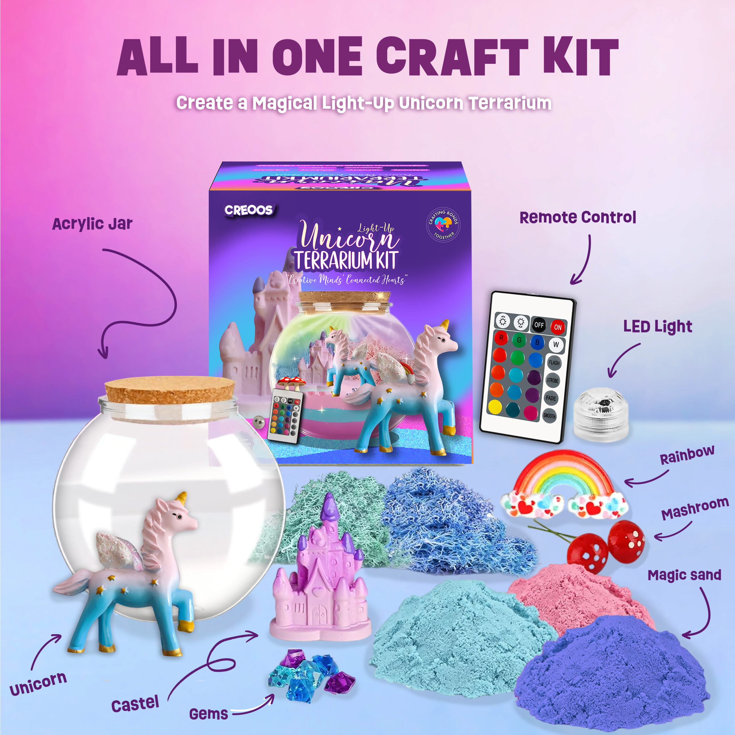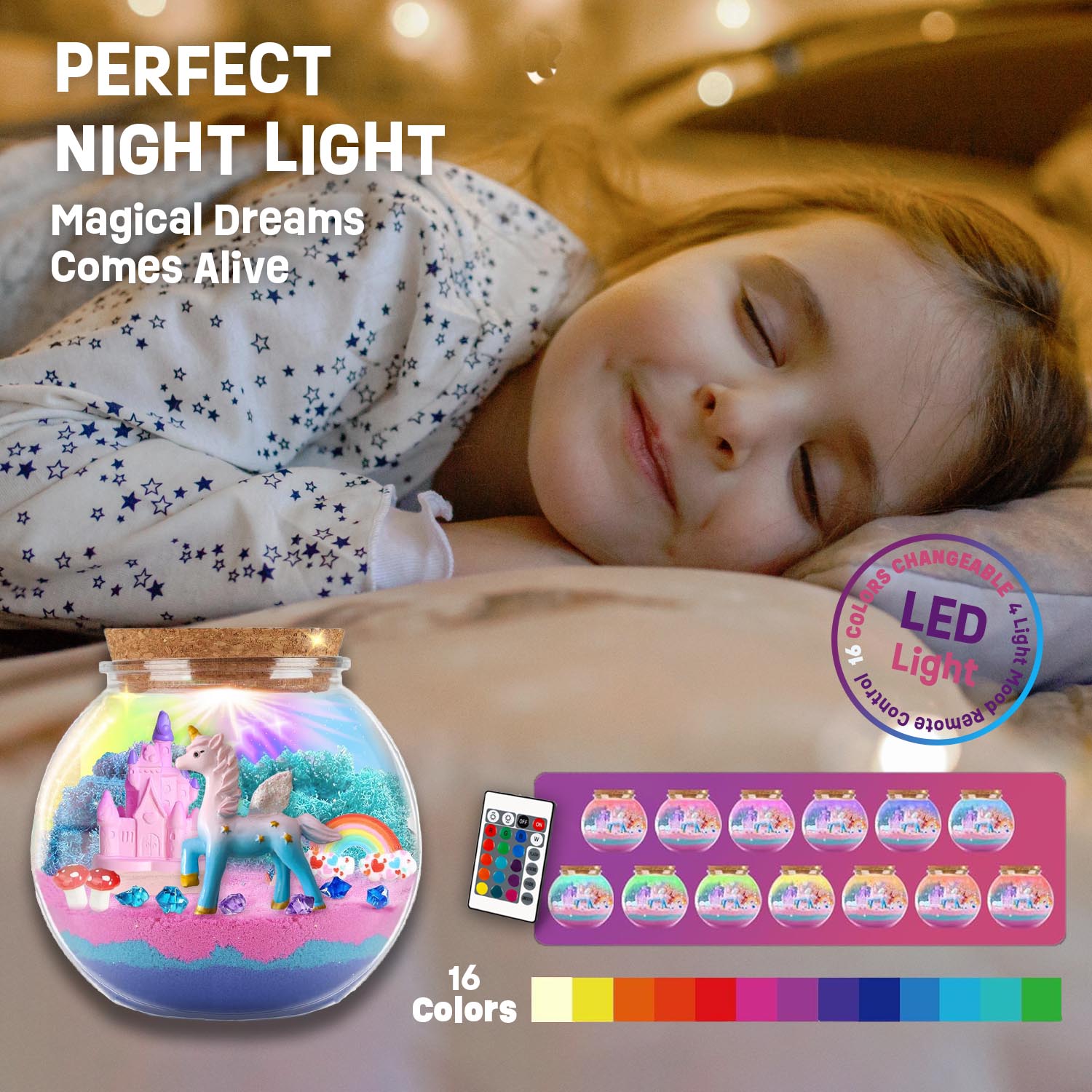 - ✅ Unicorn Terrarium Kit for Girls: Perfect for unicorn lovers! This unicorn terrarium kit for girls is an engaging way to create a glowing terrarium with a remote control night light to brighten up any room. Gift for 10-year-old girl
